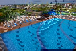 Pool med vattenrutschkanor
